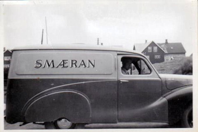 Tá í tíðini bíløgdu nógv fólk vøru úr Smæruni, sum í kassum vóru koyrdar til dyrnar hjá fólki. Poul í Skorini koyrdi vørubilin, og mangan koyrdi eg vøru út saman við Poul, sum var fyrikomandi maður. Smæran var mest sum í tveimum. Vanligi kolonialhandilin við stórari skivu og nógvum skuffum við vørum allastaðni. Havi mangan hugsað, um starvsfólkini tá í tíðini høvdu havt fetmátara um beinini, tí langt var at ganga bara eftir einari vøru runt stóra skivuna.