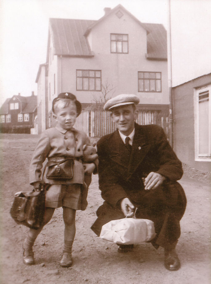 Helge Michelsen kom í Smæruna sum tjúgu ára gamal og arbeiddi har í 48 ár. Smádrongurin eitur Torbjørn og er sonur Otto Jacobsen, sum varð skotin av týskum soldáti í Næstved í 1945.