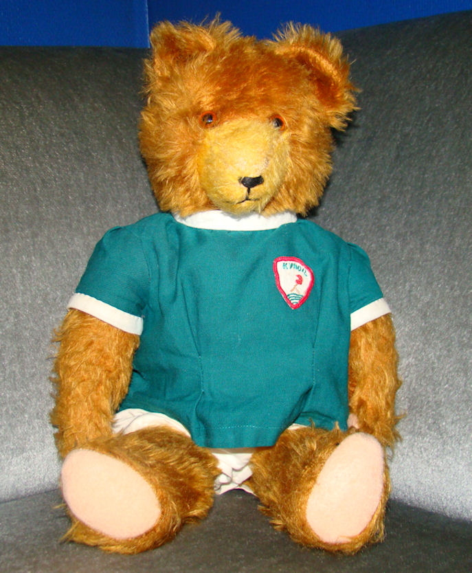 Hesin maskottur fyllir eisini skjótt seksti ár. Elsa seymaði troyggjuna til maskottin, sum tey plagdu at hanga í málið. (Mynd Vagnur)