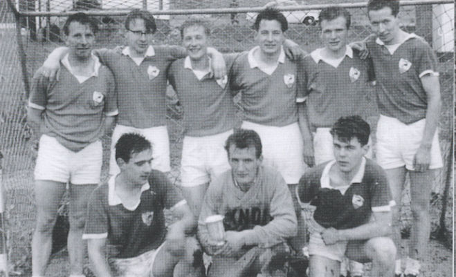 Kyndilmenn vinna FM-heitið í 1963. Standandi f.v: Hannis Jacobsen, Vagnar Olsen, Peter Sigurd Rasmussen, Torbjørn Mikkelsen, Sverri Jacobsen og Heðin Mikkelsen. Fremst f.v: Petur Hans Poulsen, Jørleif Kürberg og Jóan Pætur Midjord. (Mynd Bjartur er kyndilslogin)