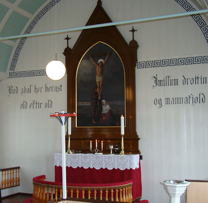 Núverandi kirkja er bygd í 1867, hin fyrra var so lítil og niðurslitin, at ikki var mett ráðiligt at umvæli hana, men heldur taka hana niður og byggja eina nýggja, sum stóð liðug í 1867.