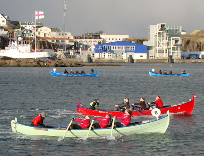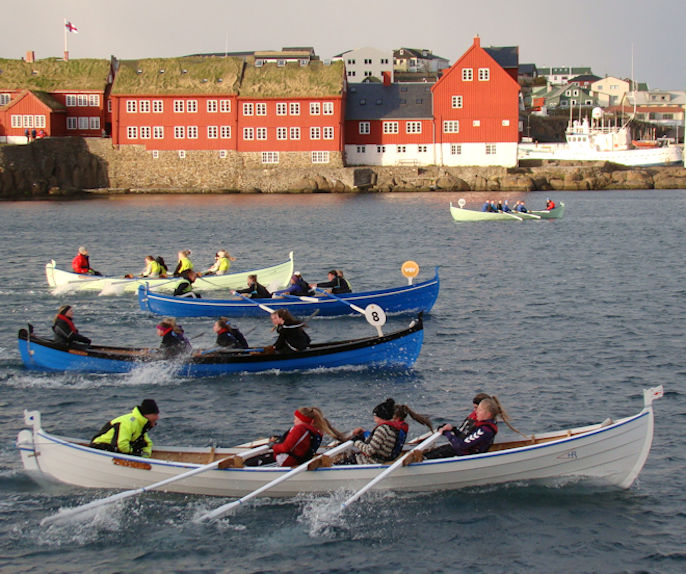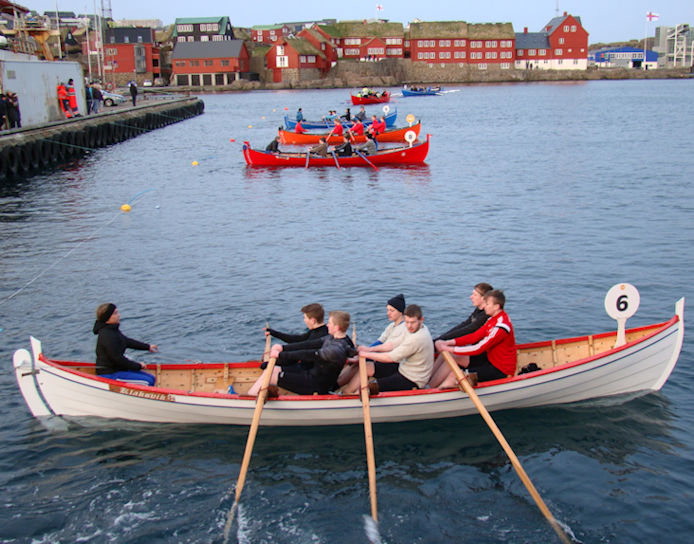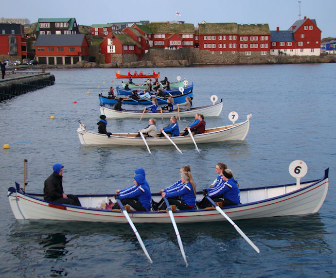 Vøkur sjón at síggja tey fýra 6-mannaførini við kvinnum. Nærmast Jarnbardur, síðani Rádni, Lómur og Sølmundur. (Mynd Vagnur)