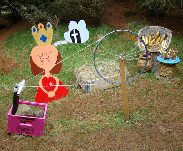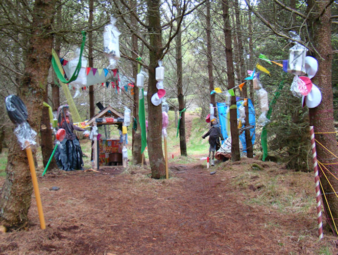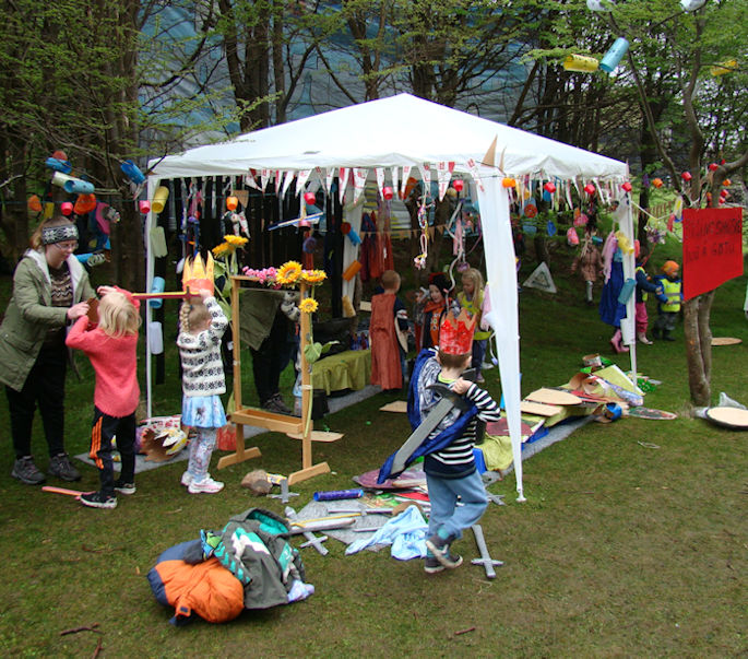 Úr køksvindeyganum hjá okkum hava vit gott útsýni yvir í Plantajuna, sum vit frá barnaárunum hava rópt hetta stað. Orðið Viðarlundin kom seinni. Seinastu dagarnar hevur heilt nógv virksemi verið sunnast í Plantasjuni nær Havnará og inni ímillum trøini. Á skelti úti ímóti Hoydalsvegnum stendur at lesa: Kom inn í ein ævintýrheim við tónleiki, dansi og endurnýtslu. Hetta havi eg gjørt, og eg má siga, at tað er ótrúligt, hvussu nógv tey hava skapað og fingið burturúr. Ikki hevur skortað við hugflogi. Eitt upplivilsi at síggja allan ævintýrheimin. Eg ringdi til ein av høvuðsfyrireikarunum Biritu Arge og spurdi hana, hvussu leingi tey hava fyrireikað tiltakið, og hvørji eru partur í áhugaverda ævintýrheiminum: