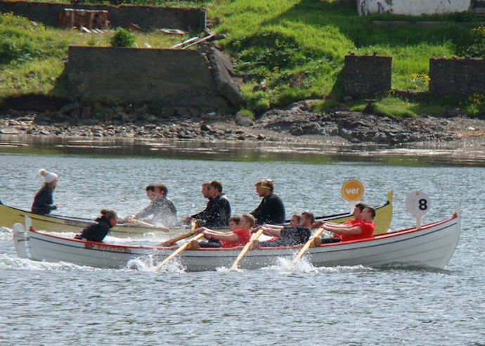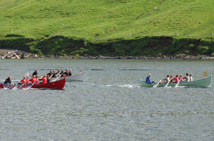 Havnarbáturin, sum lá væl fyri fyrsta hálva teinin,  misti knappliga nógv í nøkrum fáum tøkum, og bæði Eysturoyingur og Ormurin fóru fram um. Drekin reyði var eisini dragnaður nakað. Um Suðuroying er stutt at siga, at nú gongur ikki longur at manna bát til stevnu við lítlari venjing og so rógva við góðum úrsliti. Suðuroyingur fekk góðan start og helt tørn fáar hundrað metrar, men so orkaðu menn ikki meira.