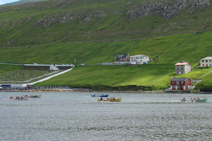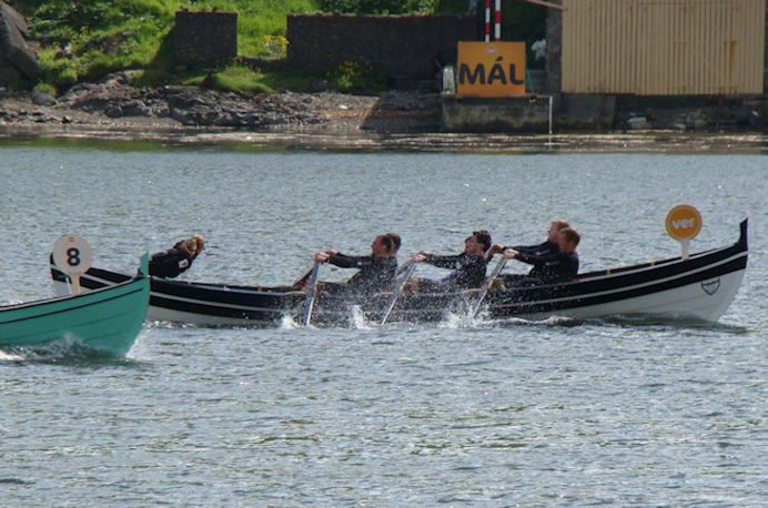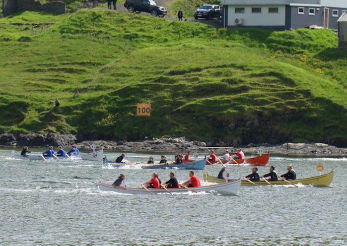 At enda vil eg nevna 6-mannaførini við monnum, har kappingin einast stendur millum Smyril og Hvessing. Teir umborð á Hvessingi fingu góðan start og løgdu seg klárt á odda, men tað sýnist, at teir umborð á Smyrli orka meira at halda ferðina allan teinin. Teir umborð á Hvessingi vanta tað allar seinasta. Firvaldur við gentum, Erla kongsdóttir við kvinnum og Rádni við kvinnum vinna FM-heitð. Tað sama gera Smyril við monnum og 8-mannafarið Nevið reyða og Eysturoyingur. (Vagnur)