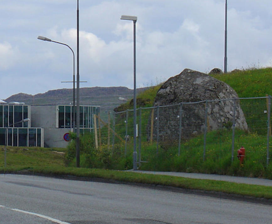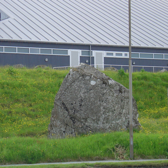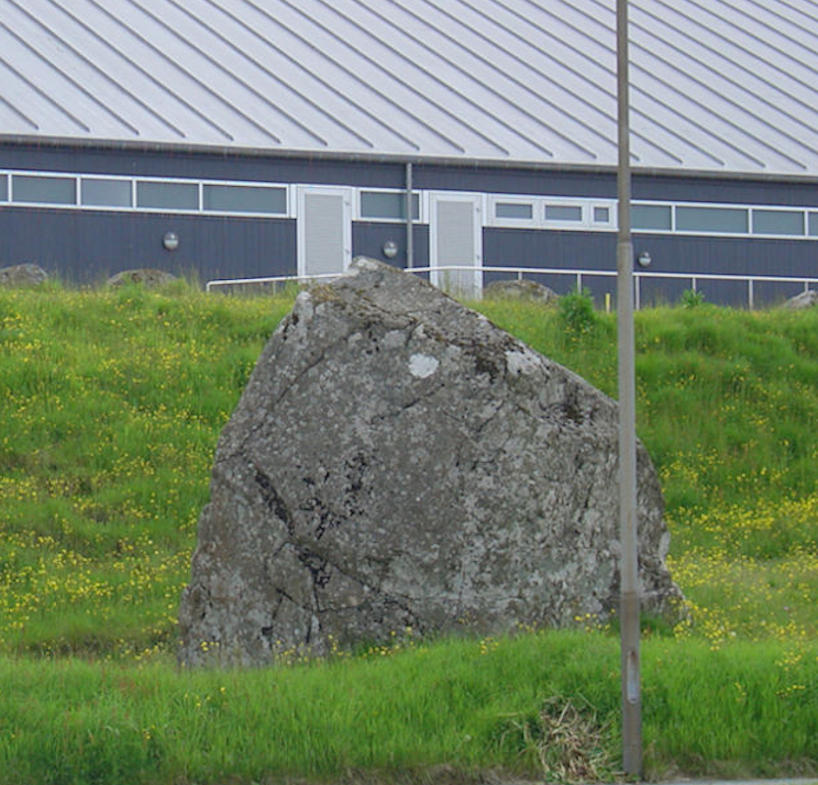 Stórt spreingivirksemi fer fram við høllina á Hálsi, tí høll skal byggjast uppí núverandi høll, og nógv parkeringspláss skulu gerast eystanfyri høllina. Tey hava sett girðing um økið, men eg síggi, at stórur vakur steinur sleppur at standa. Sjálvandi, vil eg siga, tí hetta er søguligur steinur, sum verður róptur Skipar Hansens steinur. Vit skulu heilt aftur til 1808 til navnframa Brillumannin til tess at fáa at vita, hví hesin steinur kom at vera róptur Skipar Hansens steinur.