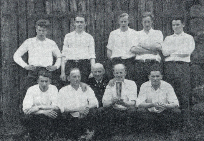 Manningin á Miðvingi frá gullárunum. Manningin var: Eliesar Ellefsen, Joen P. Frederiksen, Hans J. Poulsen, Jon Joensen, Bjarnir Joensen, Edmund Johannesen, Christoffer Joensen, Albin Vang og Eikil Rasmussen. Niclas í Koltri er eisini á myndini.