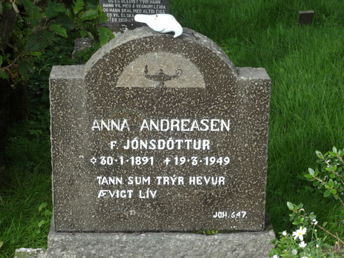 Andreas Andreasen pápi Thorvald var ættaður av Eiði. Hann var motorpassari og fiskimaður. Sum ungur fór hann til Seyðisfjarðar í Ìslandi at rógva út, og har hitti hann seytjan ára gomlu íslendsku gentuna Annu Tórunn Jónsdóttir. Anna var uppvoksin á Éiðum eitt pláss norðanfyri Egilstaðir. Tey gjørdust góð, og Anna kom sum seytjan ára gomul við Andeasi til Føroya. Ì 1909 bygdu tey sær hús á Oyrabakka. Anna Tórunn var rópt Tóta sum fleiri av eftirkomarunum eita eftir. .