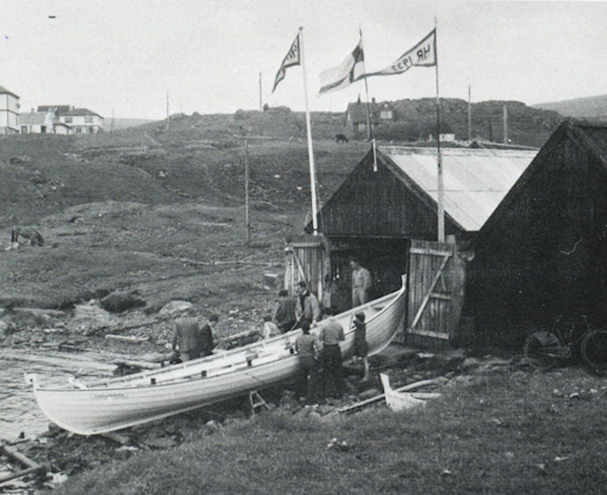 Fyrsta neystið hjá Havnar róðrarfelag. Tað var gamla Hornaneystið, sum róðrarfelagið tók uppá seg at byggja uppaftur. Hetta var í 1943. (Mynd bókin Drekin)