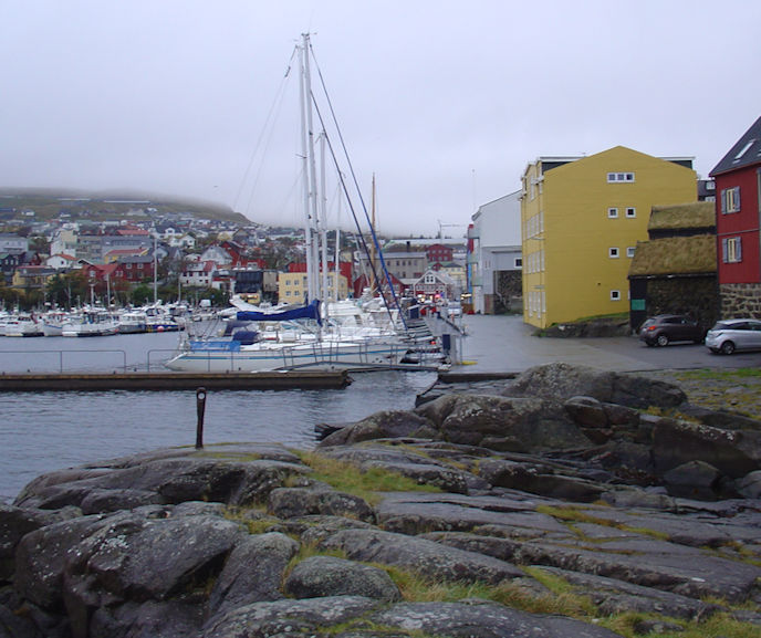Fara vit til myndina, sum Christian Holm Jacobsen tók frá Skinnaraskeri og inn í Vágsbotn og myndina, sum eg nú trýss ár seinni tók leygardagin, so eru tríggir høvuðsmunir. Á eldiri myndini síggja vit bara 4-og 5-mannafør, meðan á mínari mynd liggja glastrevjabátar í milliónaflokki bundin í brúnna. Dýrir bátarnir eru bara til spæl, sum boðar frá góðum tíðum í Føroyum. Síðani eru tað bilarnir, sum siga mær, at myndin er frá einaferð í 1950-árunum. Morrisbilurin koyrdi eisini 1960-árunum, men tað gjørdi hasin lítli lastbilurin ikki. Inni undir Gamla Danmark síggja vit bátin hjá Djóralæknanum.