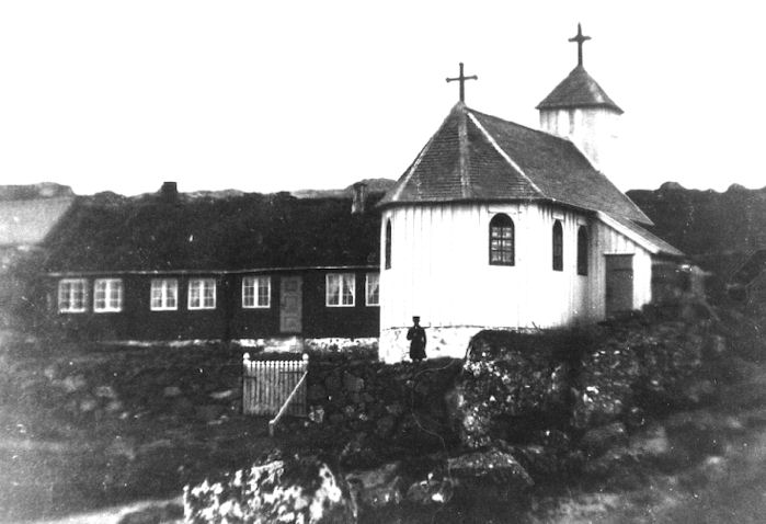 – Kirkjan var vøkur innan, litfagrar halgimyndir hingu á bróstinum, og altarið var prýtt við blómum og myndum av jomfrú Mariu. Øll húsini, bæði kirkjan og Bauers hús, sum tað varð kallað, vóru væl umsitin til stóra gleði fyri vaksin og børn. Har var stórur kálgarður og urtagarður um húsini og kirkjuna. Har vuksu trø og blómur, sum fólk ongantíð høvdu sæð áður. Ahorn, gullregn, roynitræ og nógv annað vakurt.