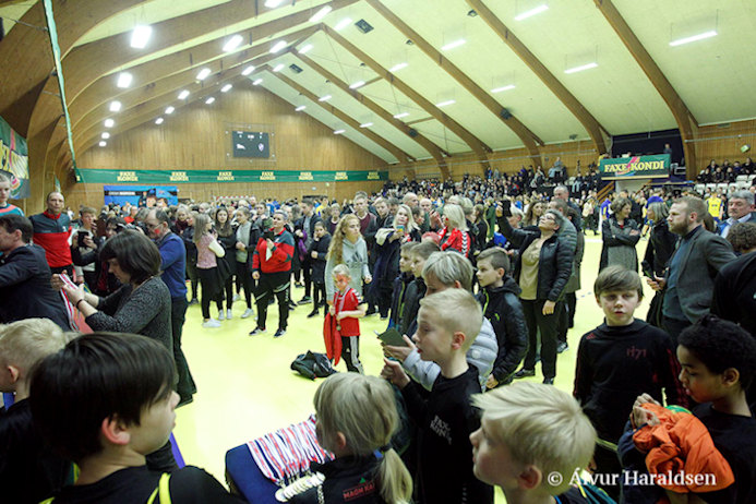 Steypavikuskiftið er hæddarpunktið á árinum, og spælararnir hava fingið hondbóltsminni fyri lívið. Síggi á Facebook, at nøkur fólk ilskast inn á, at fólk vála inni á vøllinum millum dystirnar. Nú er tað soleiðis, at eingin høll í Føroyum hevur altjóða mát, og eg haldi ikki, at tað ger nakað, at tey ungu, sum hava sitið still so leingi sleppa inn á vøllin millum dystirnar. Tá tað ljóðar í hoytalaranum, at nú byrjar næsti dystur, so fara tey ungu av vøllinum. Meira er ikki í hesum.