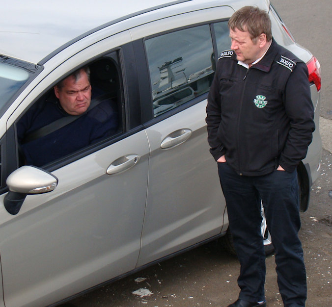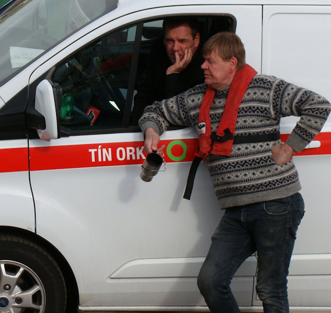 Trygvi Johansen er royndur dómari í RSF. Til høgru Poul Jón Æðustein fyrrverandi nevndarlimur í Róðrarsambandinum. Teir høvdu eisini leita sær oman á Vestaru bryggju flaggdagin. (Mynd Vagnur)
