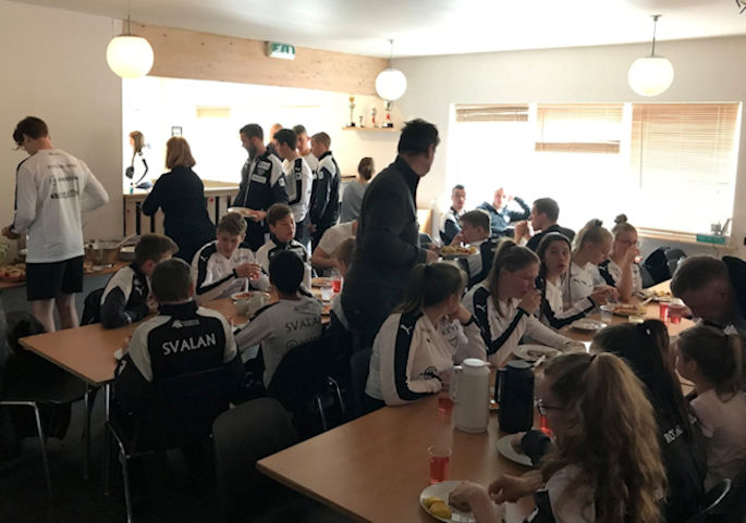 Her eru rógvarar úr Vágs kappróðrarfelag í Árnafirði fríggjadagin fyri norðoyastevnu. Tey lógu nátt og hugnaðu sær, áðrenn tey skuldu rógva kapp. (Mynd Rógvi Kærbech)