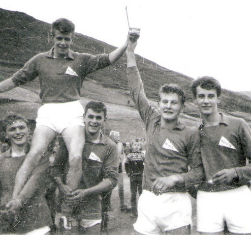 Mynd frá 1966, tá vit vunnu unglingadeildina. Frá vinstru Harald Kjeld, Sverri Wang, Steinbjørn Slættanes, FinnBjørn Guttensen og Vagnur Michelsen. Lagið er sum vera man gott.