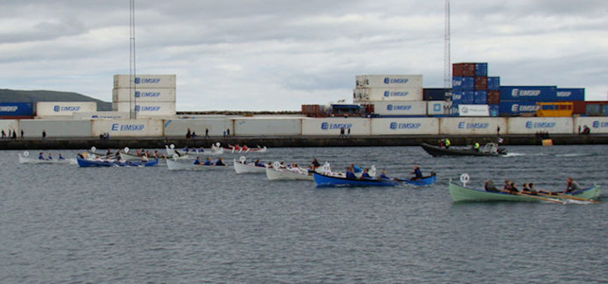 Nógvir áskoðarar vóru í fjør komnir á bryggjuna at hyggja at barnaróðurin. Myndin er tikin fyri at fyrsta skotið brast. (Mynd Vagnur)