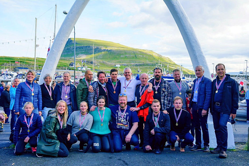 Bátur okkara við beiggja mínum “Torbjørn” við róðrið fylgdi Leivi um fjørðin, og umborð vóru eisini sonur, dóttir og svigarsonur, so hetta er at meta sum hátíðardagur, tá pápin svimur um Nólsoyarfjørð. Tað var ein errin beiggi, sum eg hitti í telefonini, ti fyri trimum árum siðani var tíðin 1.43 tíma og í ár var tíðin 1.35 tíma. (Vagnur)