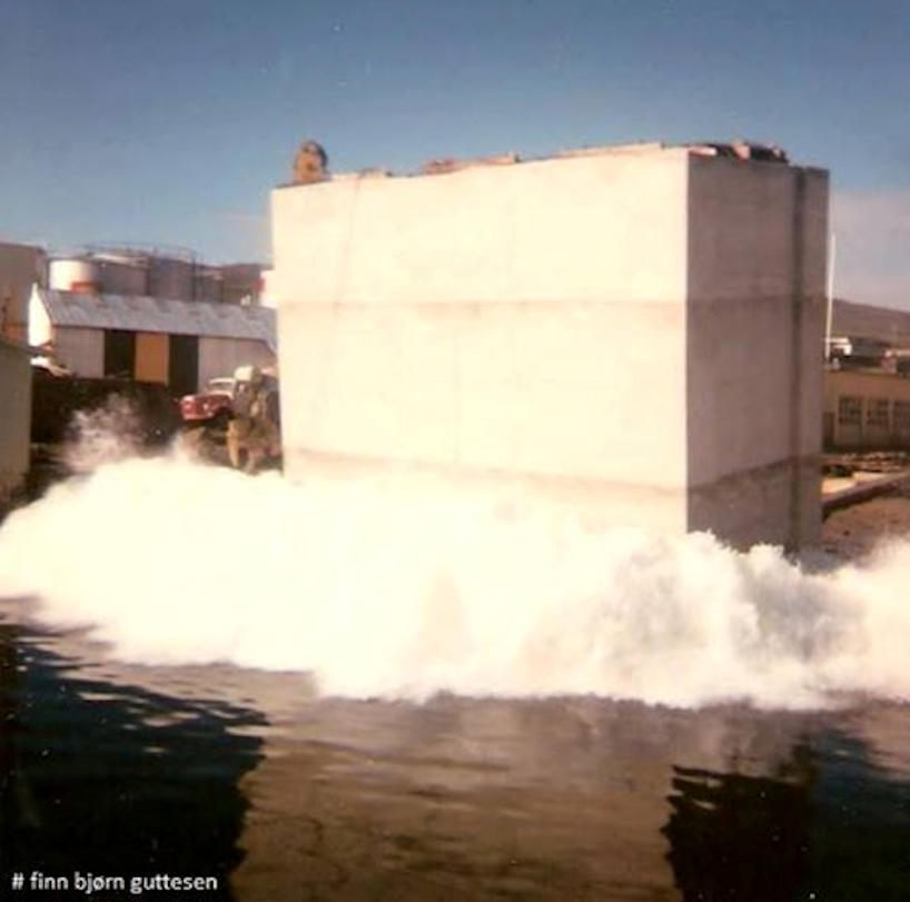 Áhugavert var at síggja, tá kisturnar vóru sleipaðar á sjógv. (Myndin, sum FinnBjørn tók, er frá 1971)