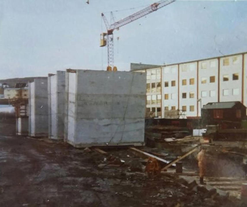 Myndirnar, vit síggja, eru myndir, sum vinmaðurin FinnBjørn Guttesen tók í 1971. Tað var Phil & Søn, sum longdi Molan út í núverandi longd. Sum vit síggja á myndunum, so vóru betongkistur stoypar við Vestarubryggju. Vit hava mangan hoyrt, at tað er ov grunt hjá teimum størstu ferðamannaskipunum at liggja við Molan. Vit síggja hæddina á kistunum, sum uttan iva eru einar níggju/tíggu metrar høgar. Hetta er eisini fjarstøðan frá vantskorpuni og niður á botn.
