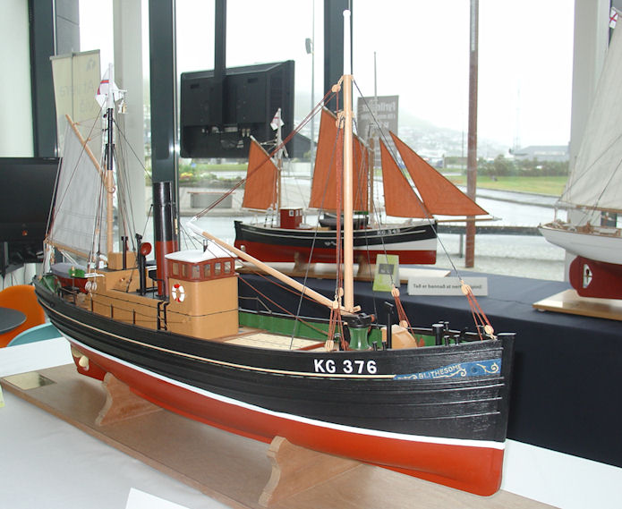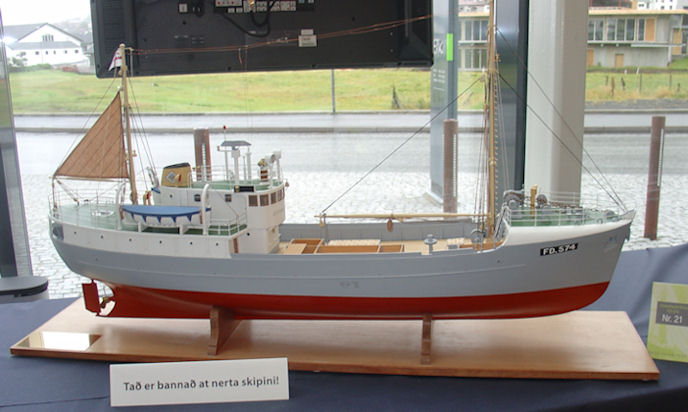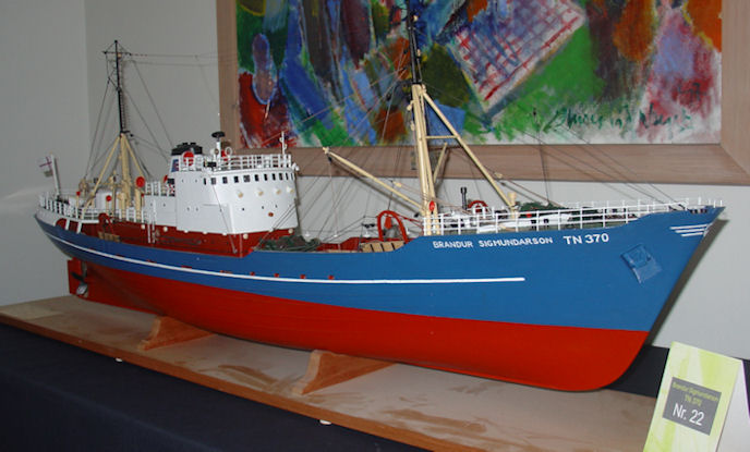 Meðan vit gingu millum forvitnisligu modellini av vøkru skipunum, sveimaðu sjálvandi tankarnir. Fyrst sóu vit síðutrolaran Brand Sigmundarson úr Havn, sum Bacalao átti, og sum kom til Havnar í 1960. Eg kann minnast, at hundraðtals fólk vóru á Vestaru bryggju, tá ið stásiligi trolarin kom á Havnina. Tvey ár seinni kom trolarin Magnus Heinason, sum var systirskip til Brand. Fólk í Havn vóru tá ovfegin at fáa tveir so stórar trolarar at landa í Havn.