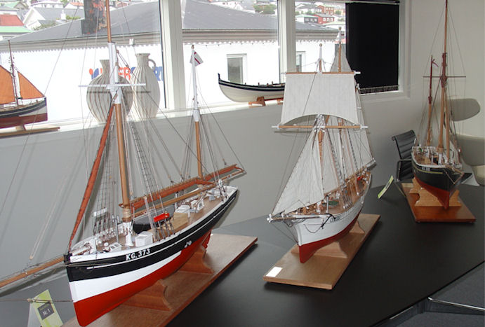Í august mánað í 2009 vitjaði eg forvitnisliga framsýning í Klaksvík. Framsýningin av modelskipum, sum listamaðurin Hans Jacob Fuglø hevði smíðað, var í hølunum hjá EIK banka, sum vóru væl eygnað til endamálið, tí ljóst var inni, og hølini stór. Har vóru sluppir, motorbátar, trolarar, línubátar og skonnartir. Framsýning var latin upp nakrar dagar áðrenn, vit komu til Klaksvíkar, og tá var hópin av fólki komið saman, tá ið framsýningin lat upp, og sum Jógvan við Keldu og Jákup Sólstein høvdu skipað fyri vegna Føroya Sjómannadag. Eg hevði myndatólið við til Klaksvíkar, og tað var áhugevert at síggja framsýningina og fleiri myndir eru niðanfyri av modellskipum.