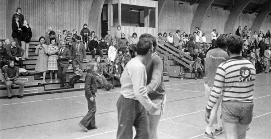 Fekk sendandi nakrar svart/hvítar hondbóltsmyndir tiknar í ítróttahøllini á Nabb fyrst í 1970-árunum. Á eini myndini sæst ítróttaskrivarin Árni Dahl, sum í síni frítíð skrivaði um ítrótt í Dimmalætting. Tá vóru eingir portalar, teldur ella slíkir hentleikar. Altíð spennandi at bíða, til vit týsmorgun fingu Dimmalætting, sum hvørt húskið í Føroyum fekk. Myndirnar fáa tankarnar at sveima.