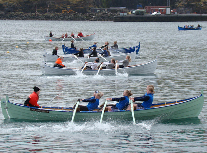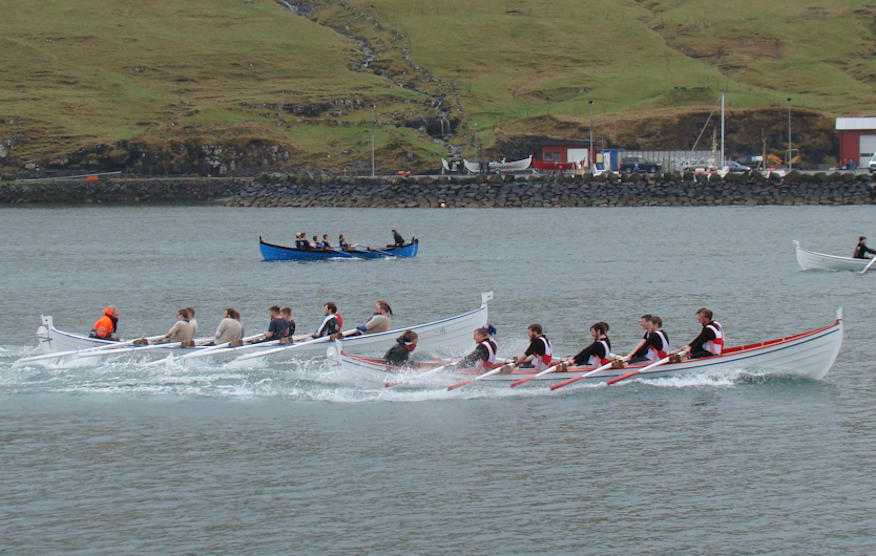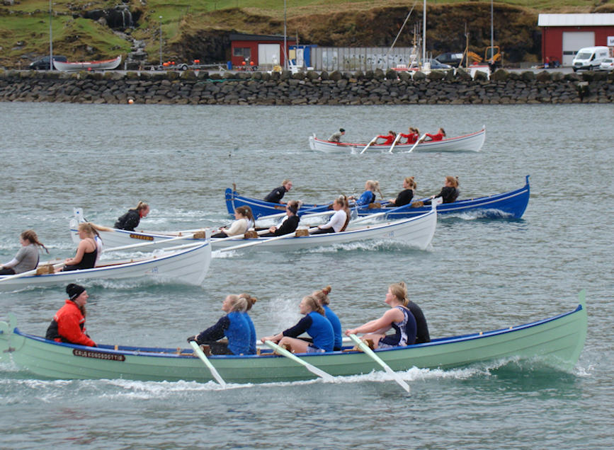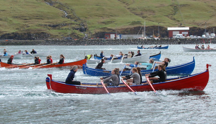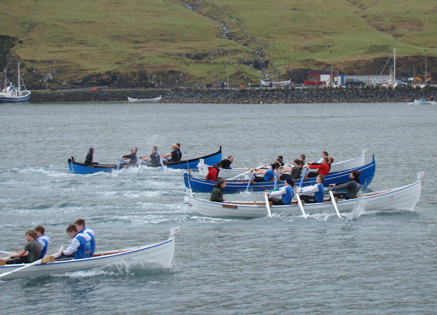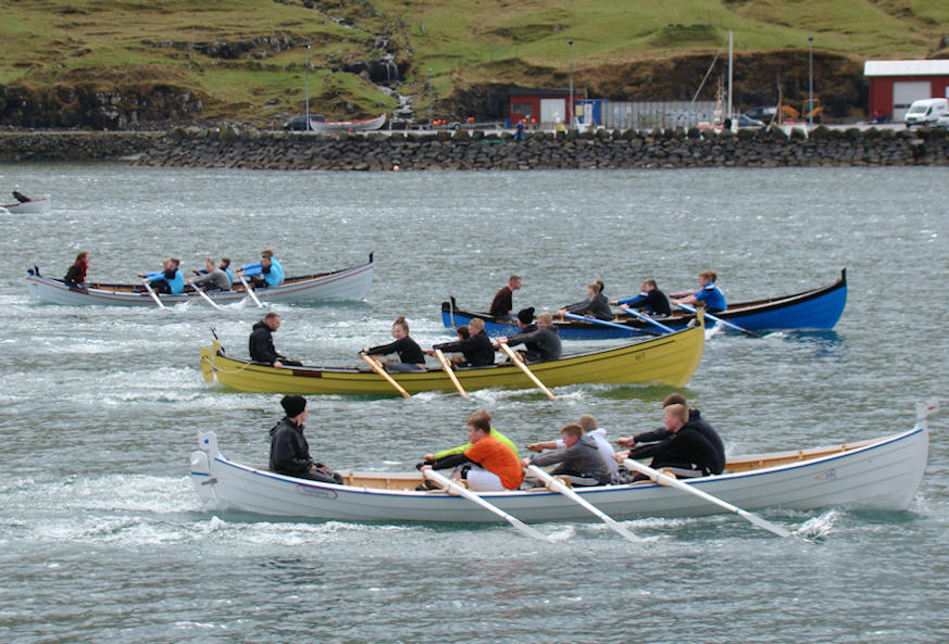 Gentubátarnir róðu í tveimum riðlum og síðani finalu. Her síggja vit nærmast Tambar, síðani, Koll, Drekan og Sílið. (Mynd Hvannrók)