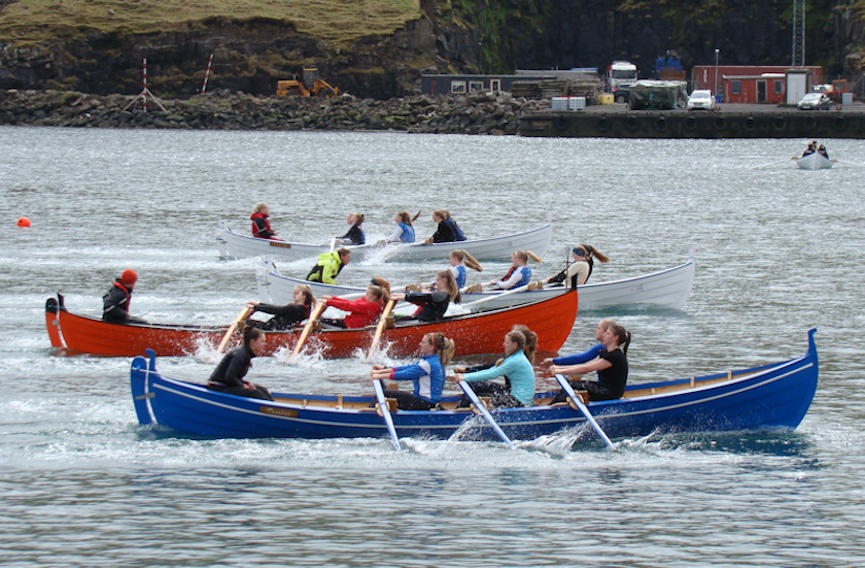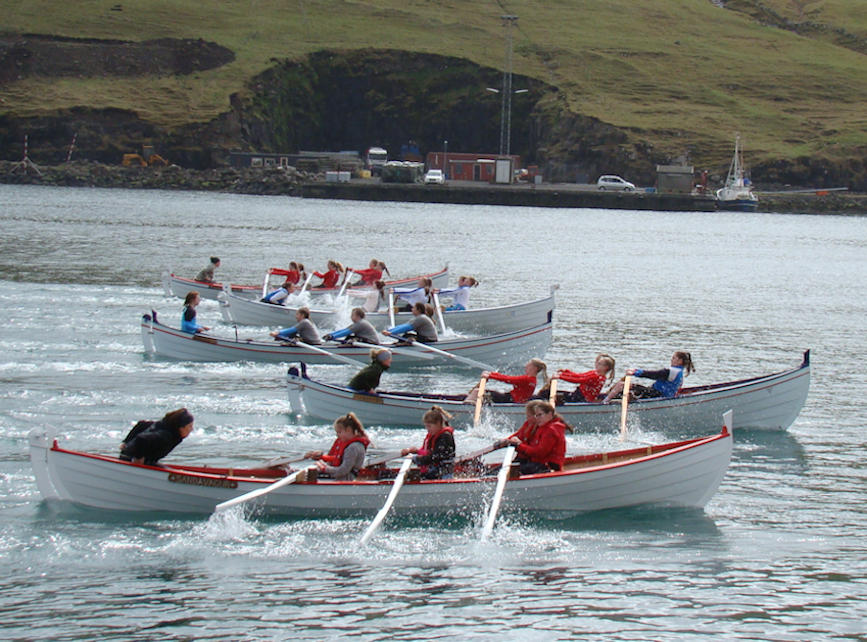 Barnaróður gentur. Nærmast Ørnin, síðani Firvaldur, Knúkur, Ingibjørg og Havørnin, sum er úr Sandavági. (Mynd Hvannrók)