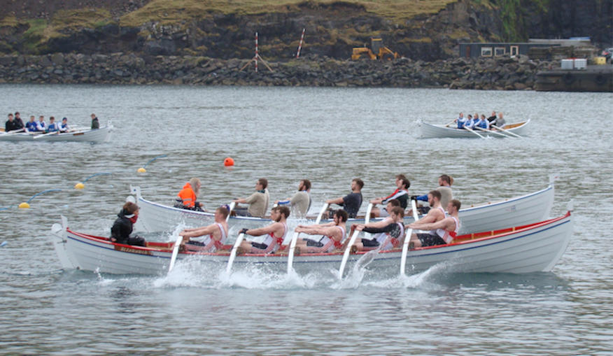 8-mannaførini fara um málið. Argjabáruin fyrstur, Ørvur næstur og Árnfirðingur á triðja plássi. (Mynd Hvannrók)