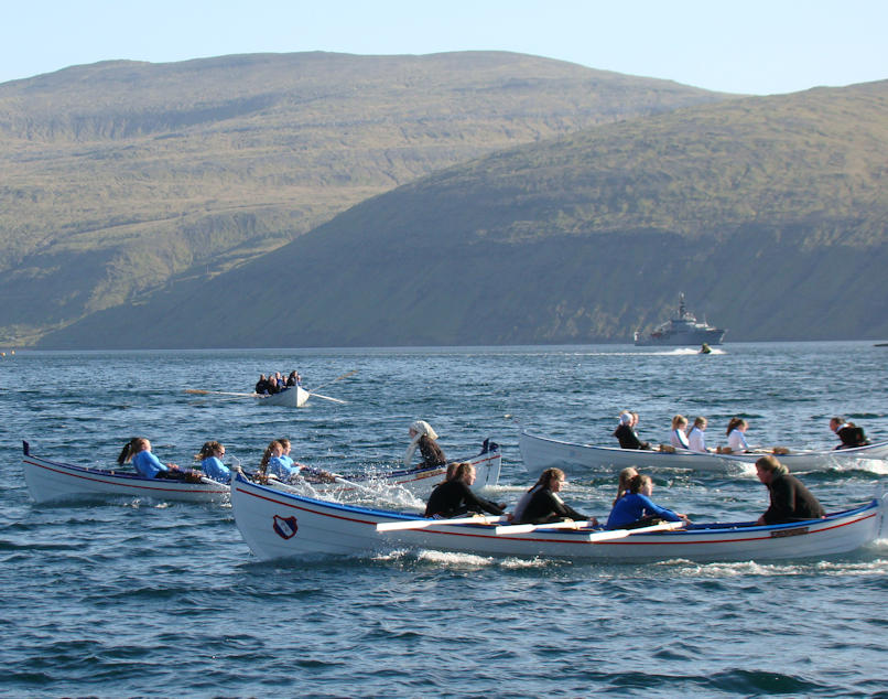 – Tú spyrt um neyst og venjingarumstøður? – Bátarnir 5-mannafarið Knúkur og 6-mannafarið Tindur standa í neysti í Norðagøtu. Vit hava fingið tíggju níggjar rógvimaskinur, og so fegnast vit um at hava fingið venjara at venja tey ungu. Hetta er John Høgnesen, sum á sinni róði við bátí Leirvík. LÍF kappróður, sum vit eldri minnast so væl. Vit keyptu eisini 6-mannafarið Sølmund, nú tey í Runavík fáa nýtt 6-mannafar. 6-mannafarið eitur Tindur, sigur Gudny Langgaard í stuttari viðmerking.