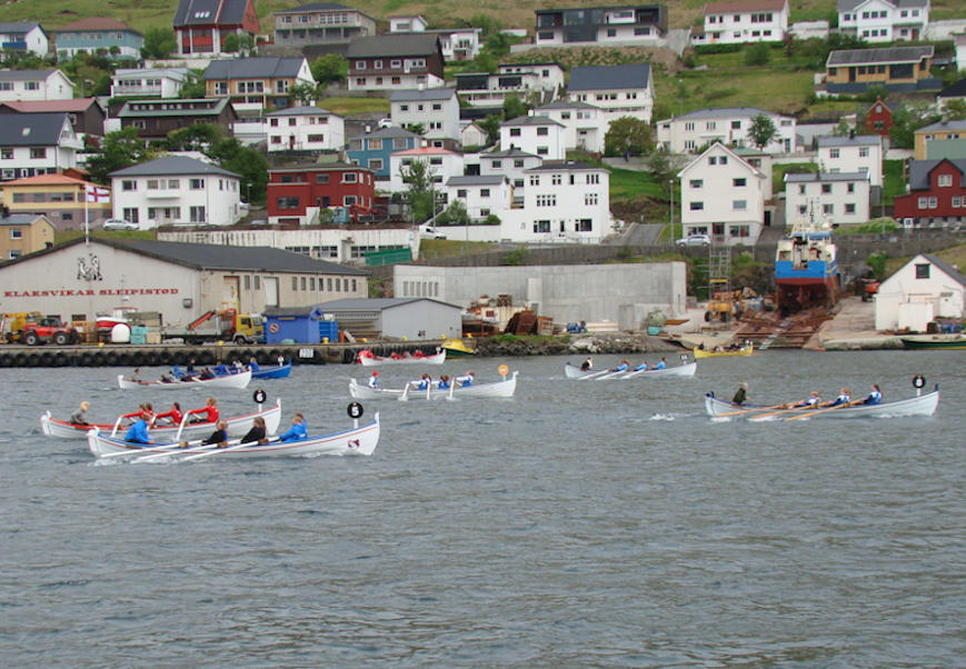 Í dreingjaróðrinum á norðoyastevnu fór Fiskurin úr Vági fyrstur um málið. Næstur Heykur úr Hósvík og Fípan Fagra úr Klaksík. Í genturóðrinum fór sum væntað Firvaldur fyrstur um málið við Knúki og Frúnni í hølinum. Vit síggja eisini, hvussu stórur munurin er í genturóðrinum, tí vit skulu minnast til, at manningarnar rógva bara 500 metrar. Niðanfyri síggja vit nakrar myndir, sum vit tóku í Klaksvík.