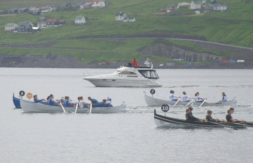Tá eg leygardag hugdi at kappróðrunum í Kringvarpinum, legði meg allar fyrst eftir at fylgja við, hvussu ymist bátarnir startaðu. Og her er himmalvíður munur. Summir bátar koma slett ikki avstað, meðan aðrir leggja seg klárt á odda við upp til hálva bátslongd eftir fáum tøkum fyri síðani at halda leiðsluna ella missa flogið eftir stuttari tíð. Trý dømi fari eg at nevna hesaferð. Torført at taka myndirnar á eystanstevnu, tí fjarstøðan er so lang frá myndatólinum út til bátarnar.