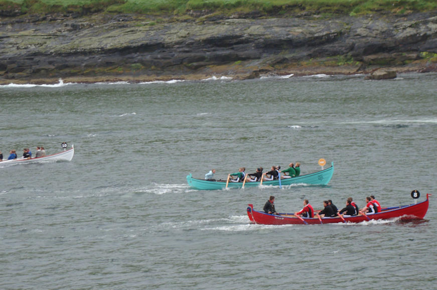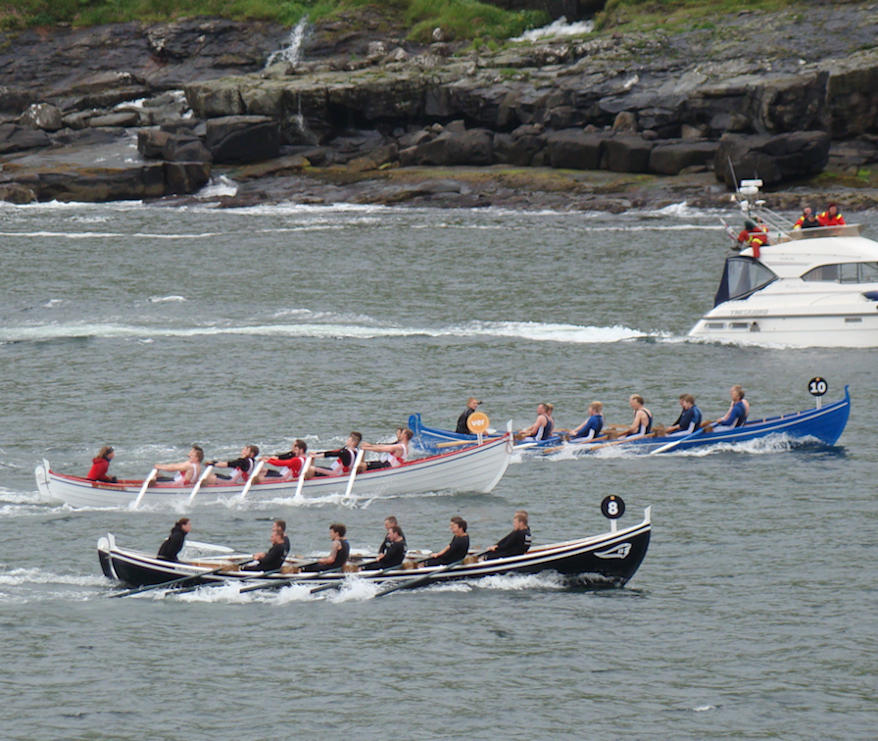 Tær eru góðar umborð á Sølmundi, sum vann róðurin. Ja, so blivur tær “eldru” umborð á Jarnbardi nummar trý. Áhugavert at síggja Smyril “jakta” Sølmund. Frástøðan bara minkar. Vit síggja eisini Páll Fanga og Skúgv. (Mynd Hvannrók)
