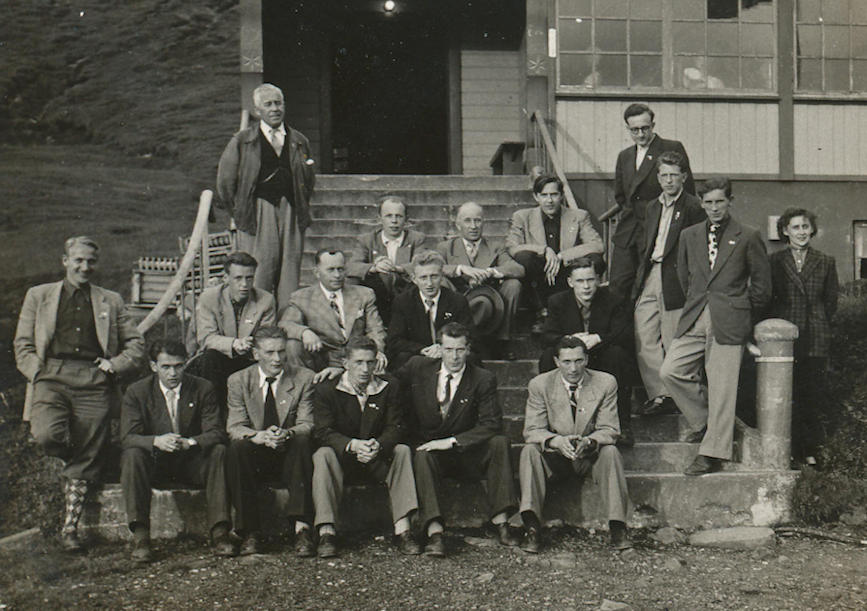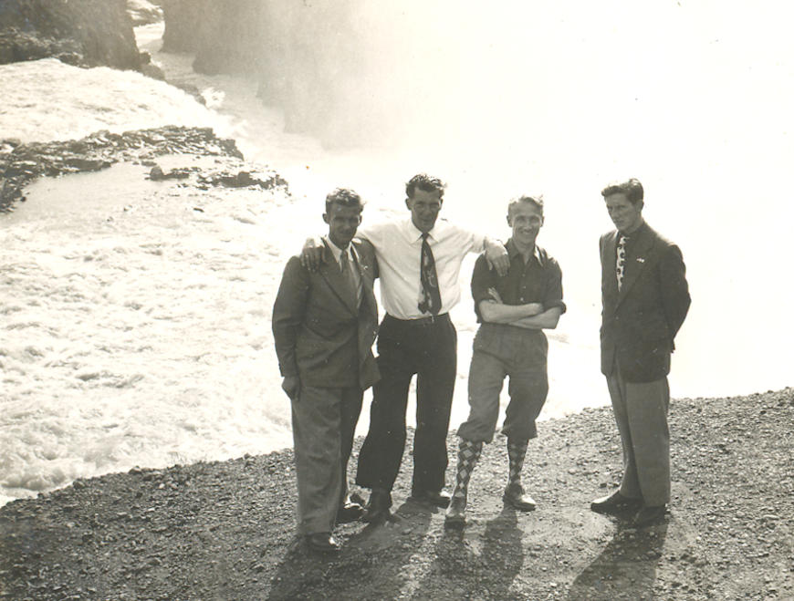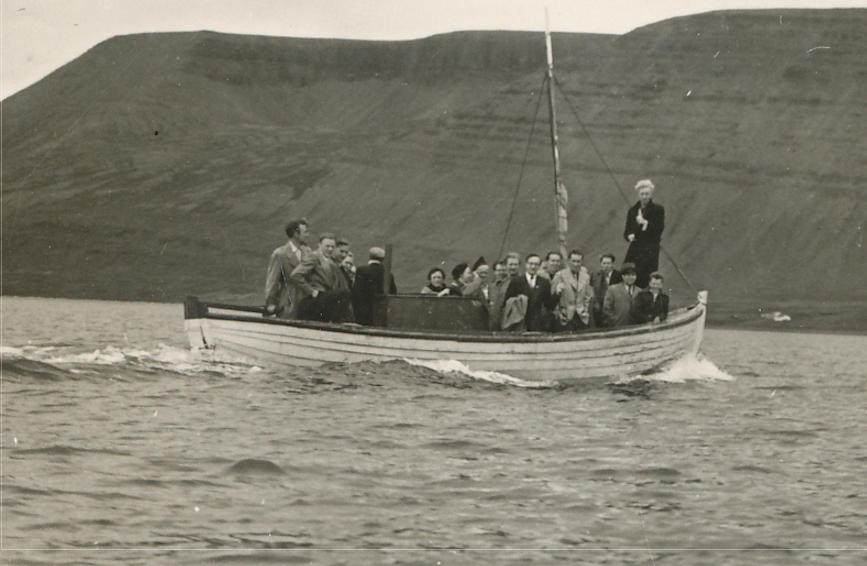 Teir hugna sær í Íslandi í 1954. Frá vinstru: Heini, Jógvan, Símun, Eivind, Kjartan, Brynjar, Alli og Venna.