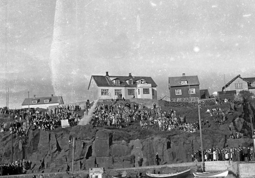 Myndin er frá 1957, tá íslendingar skipaðu fyri bjargingarroynd. Húsini Skansavegur 6 hjá Freddy og teimum síggjast mitt í myndini