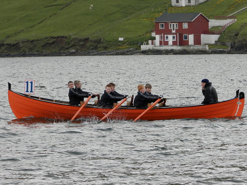 Vóni, at tað eydnast teimum í Kollafirði og Sundalagnum at fáa unglingar at rógva. Her síggja vit 5-mannafarið Koll.