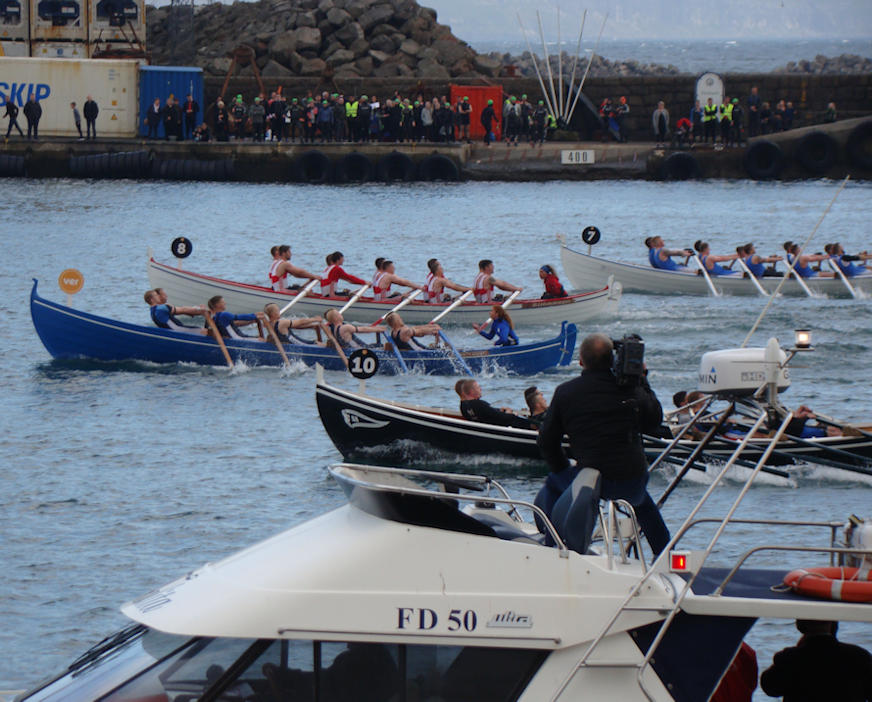 Páll Fangi vann allar róðrarnar í fjør, men nú eru ungu menninir farnir umborð á 8-mannafarið Nevið Reyða. Spennandi, hvussu fer at roynast serliga ímóti Argjabátinum, sum í fjør vann meistaraheitið. (Mynd Hvannrók)