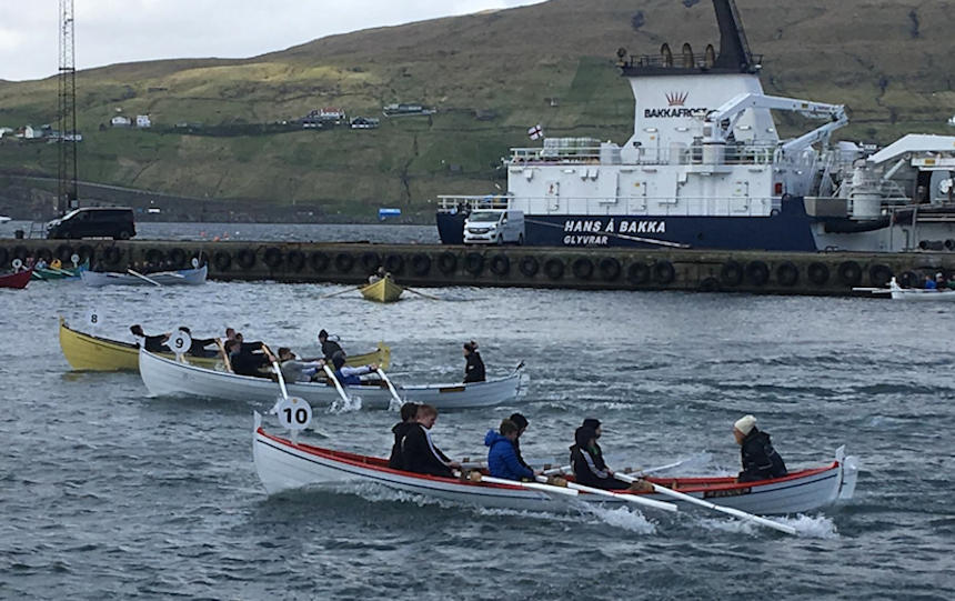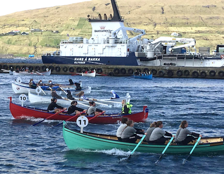 Fimm 5-mannafør við gentum róðu leygardagin ódnartøk í Runavík. Men eingin bátur úr Eysturoynni. Tó er at siga, at Fenja úr Fuglafirði, og kanska eisini Knúkur úr Tindi rógva í summar. Á norðoyastevnu koma vit at síggja nógvar gentumanningar. Nærmast Báran, síðani Blikur, Drekin, Rókurin og Firvaldur. (Mynd Sigrid Vesturgarð)