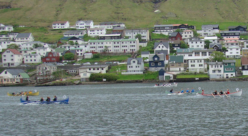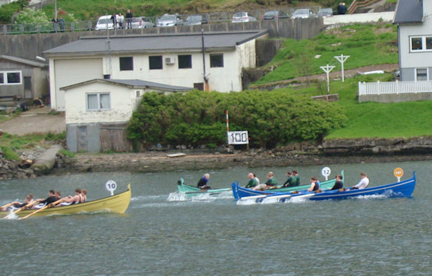 Í 2014 fekk Argja Róðrarfelag nýtt 10-mannafar, og Drekin Reyði ger bart longu á norðoyastevnu. Klaksvíkingur nummar tvey, men hvørgin bátur rør á norðoyastevnu komandi. (Mynd Hvannrók)