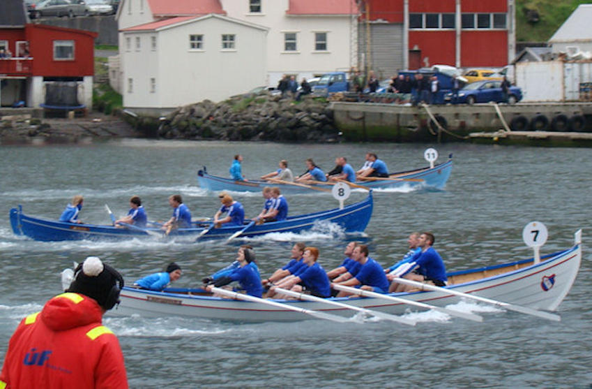 Higartil rógva í summar trý 10-mannafør Suðuroyingur, Havnarbáturin og Ormurin og trý 8-mannfør Argjabáturin, Nevið Reyða og Tofta Regin. Áhugavert at fáa staðfest, hvussu gongst at manna bátarnar kring landið. Mær dámdi ongantíð, at 1500 metrar og 2000 metrar teinarnir vóru strikaðir, tí eg heilt, at føroyskur kappróður misti stóran part av ”sjarmuni”. Ein grundgevingin var, at róðu størru bátastøddurnar bara túsund metrar, so legðist aftrat við bátum, men soleiðis bleiv ikki, og tað vistu vit.