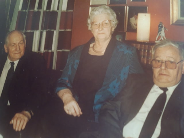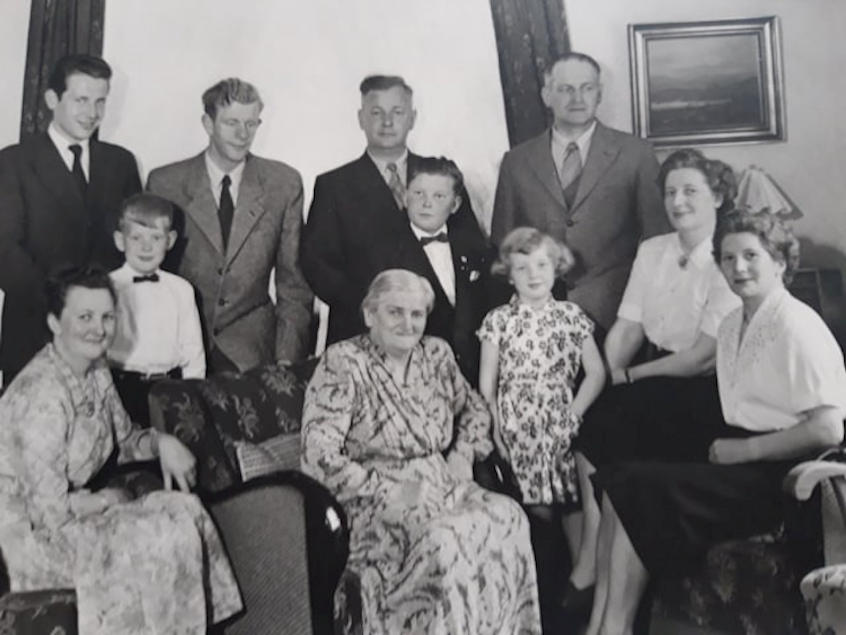 Familjan í komfirmatión hjá Eiriki soni Peturi og Betty Michelsen. Bambus tók myndina í 1960. Aftast frá vinstru. Finnur Olsen, Ingvar Olsen, Johannes (Lill) Michelsen og Petur Michelsen. Tey ungu frá vinstru eru Hans Jørgen, Eirikur og Hildur. Konurnar frá vinstru eru Betty kona Petur, Hilda, Hanna og uttast Fía kona Lill. Hans Jørgin og Hildur eru børnini hjá Ingvari og Hannu.