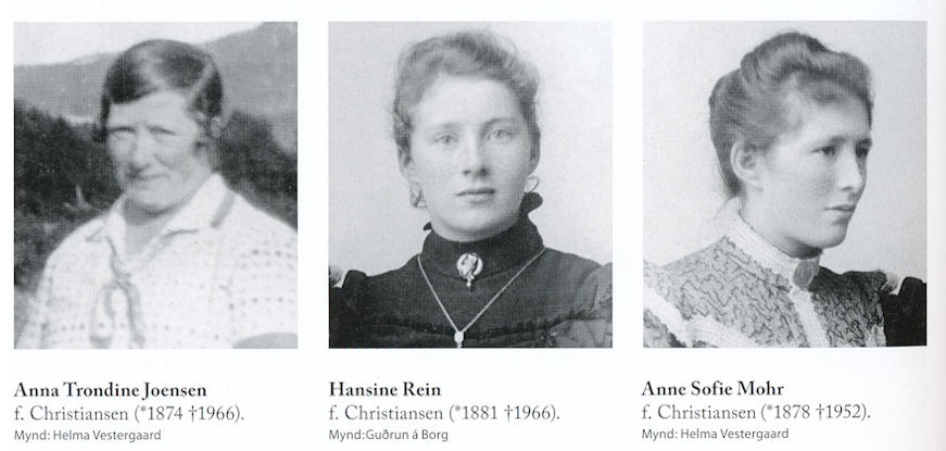 Havi eg skrivað eitt sindur um privatskúlarnar hjá Frú Rein og Frú Mohr, men ikki rættiliga funnið fram til, hvørjar hesar mergjaðu kvinnur vóru. So at leita í bókini Føroyskir fólkaskúlalærarar, og eftir at hava ringt til ymisk fólk, endaði eg í bókini Hugbirtingar frá 1981 eftir Peturi Háberg. Og hetta gjørdist áhugaverdur lesnaður um tær tríggjar systrarnar og lærarinnurnar Frú Joensen, Frú Rein og Frú Mohr.