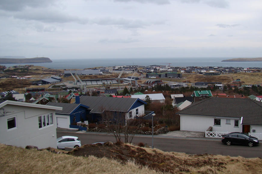 Stóra svarta barakkin sæst, har vit plagdu at dansa, men hetta vóru vánalig dansihøli, tí eingin útlufting og vindeygu at lata upp, og sveittin rann niður eftir blikkplátunum. Aðrar smærri barakkir frá krígnum eru ikki enn tiknar niður. Til høgru húsini hjá Bil Óla, tey hjá Mikkjali Helmsdal og teimum, familjuni Trónd Hansen og eisini Hvíldarheimið Naina. So mugu vit ikki gloyma Meksiko, sum var burturbeint, og nú stórt gistingarhús bygt á staðnum. Harry og tey vóru í 1950 nærmasti granni við nýggja el-verkið í Gundadali, sum júst var um at vera liðugt í 1950, sum myndin niðanfyri sýnir.
