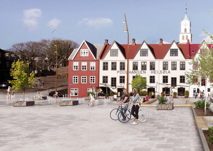 Zeta arkitektar vunnu kappingina um Torgið. Hugnaliga góð mynd, men míni eygu halda, at torført er at fremja hesa ætlan í verki. Ikki sæst á tekningunum, um slett ikki er koyrandi út í Bakka. (Mynd: Torshavn.fo)