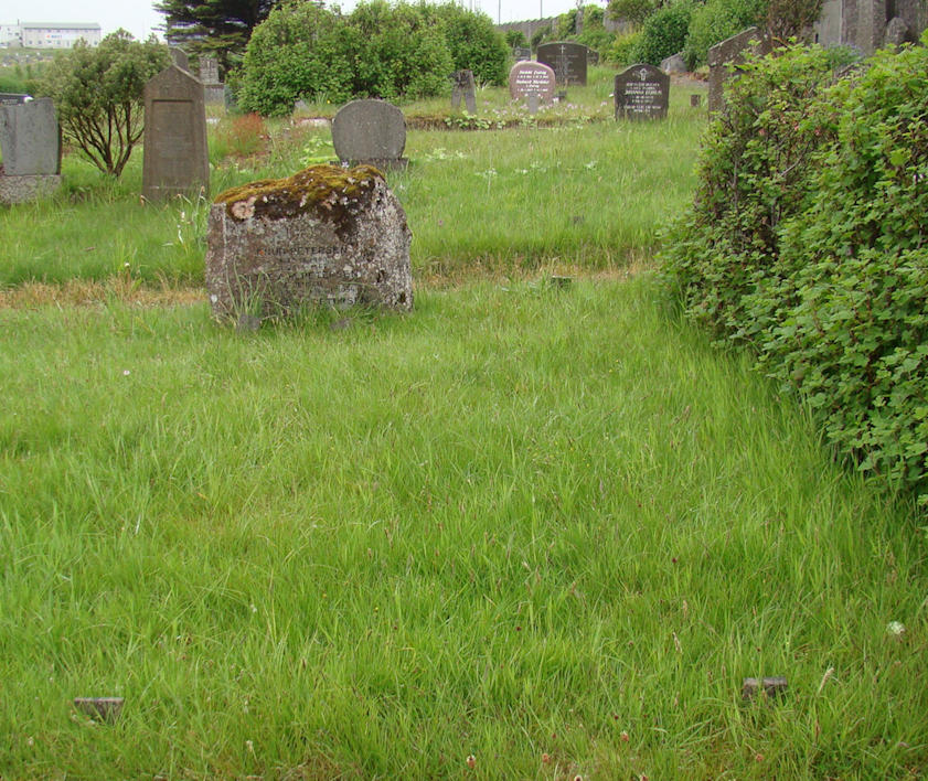 Vanligt var, at familjur fingu seks gravir, men so er ikki longur. Vit síggja gravsteinin hjá foreldrunum hjá Lítla Knúti, og Knút liggur nærmast høgrumegin í grøv nummar 136. (Mynd Vagnur)