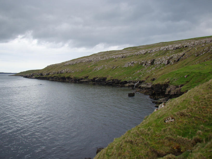 Høgrumegin á grøna stykkinum inni í Bug stóðu stóðu málstengurnar á 2000 metramálinum, tá róð var kapp inn í Vágbotn. (Mynd Vagnur)