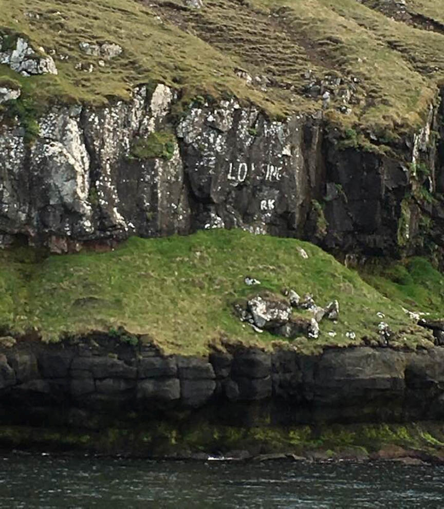 Fyri ikki so langari tíð síðani, segði Bjarti Mohr mær, at pápi hansara Høgni Mohr, sum er 92 ár ára gamal og býr á Boðanesheiminum, og tveir vinmenn málaðu LOYSING á hamara har suðurin. Hetta var juli mánað fyri fólkaatkvøðuna 14. september 1946. Báðir vinmenninir vóru Øssur Patursson (1919-1995) úr Kirkjubø og Trygvi Árting (1923- 2007) úr Havn.