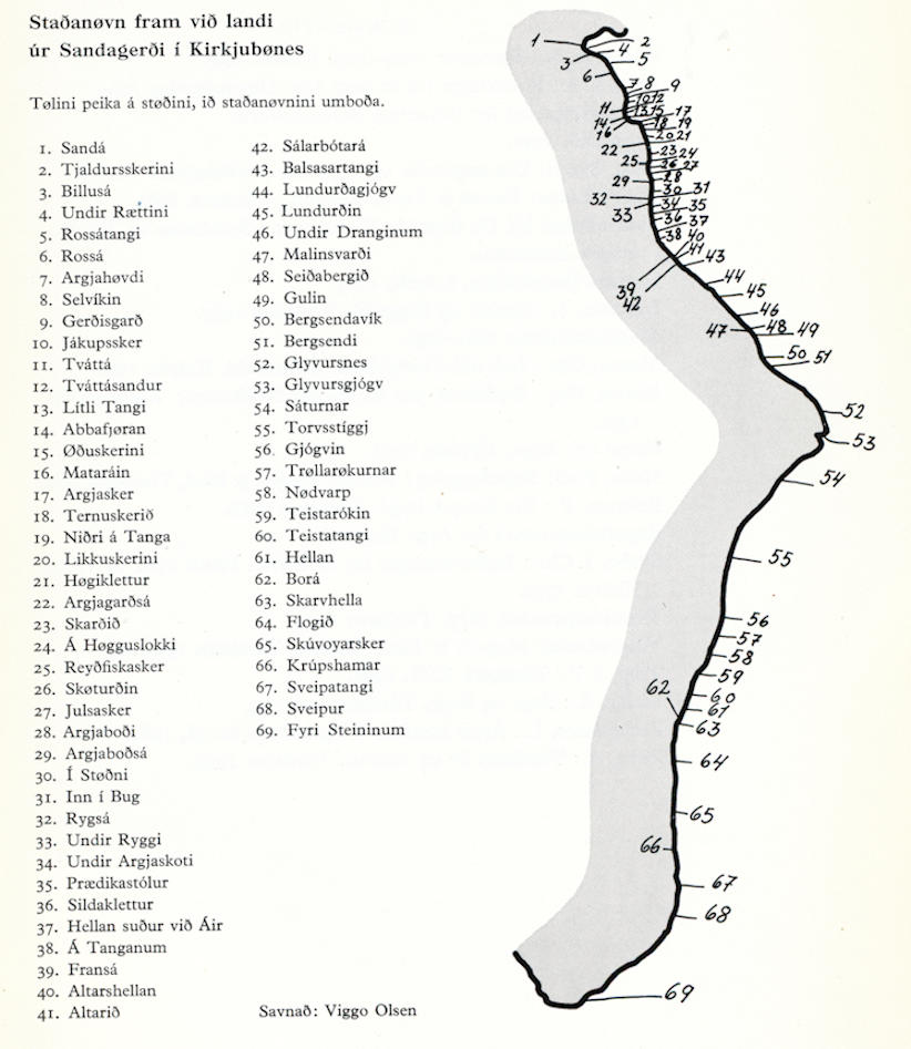 Staðarnøvnini eru nógv úr Sandagerði suður á