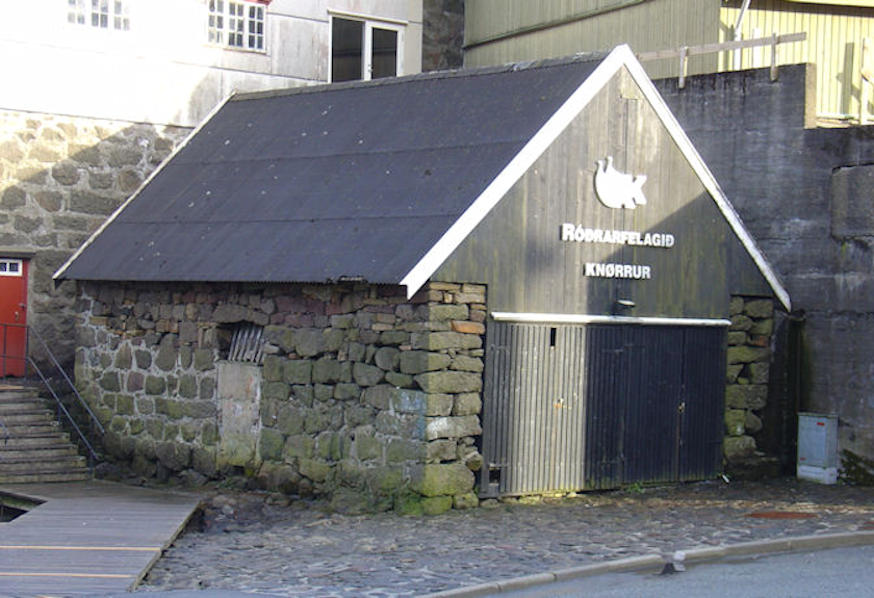Frálíkt pláss til bátarnar í Evensens pakkhúsi, men eingir aðrir hentleikar, kappróðrarfelag skal hava. (Mynd Vagnur)