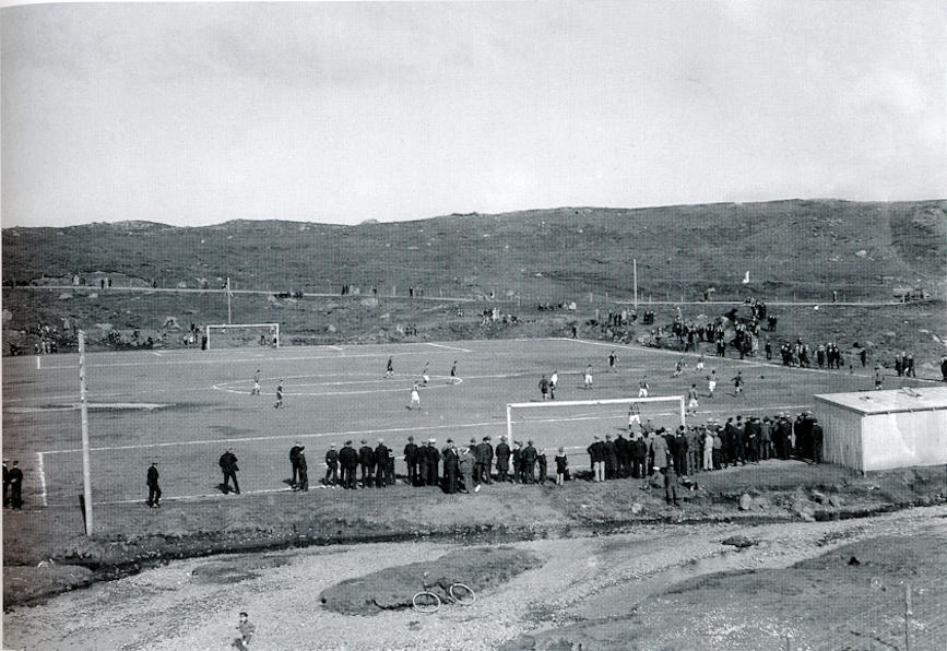 Havnará framvið fótbóltsvøllin. Archibald Andreasen stóð fyri arbeiðinum at leggja betongdekk á ánna. (Mynd: Havnin – fólk og yrki)